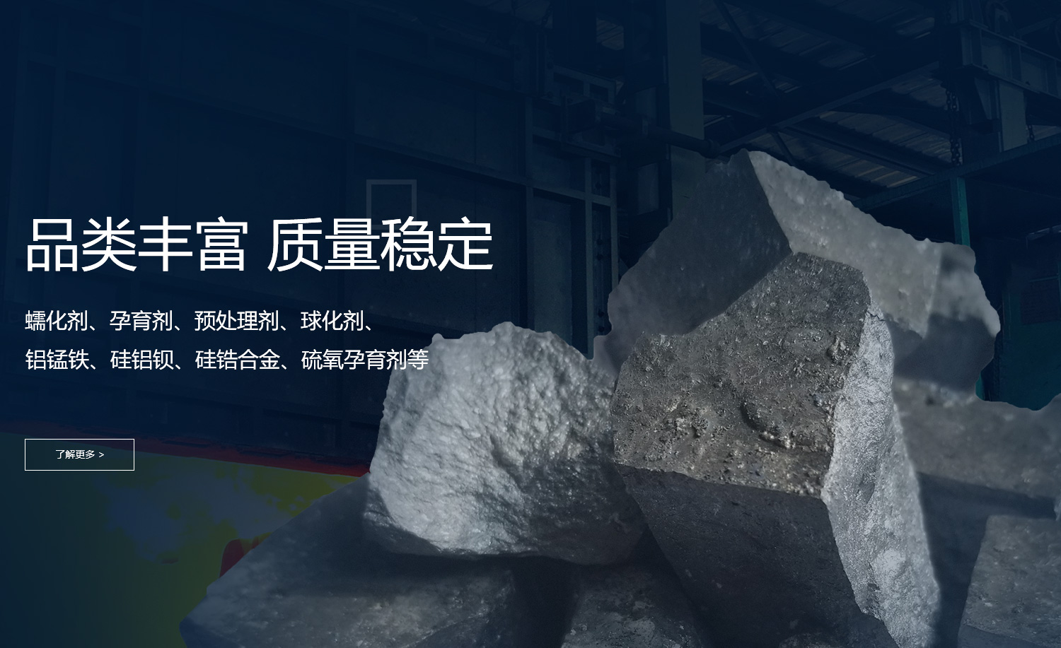 公司品種類多樣化,主要產(chǎn)品:蠕化劑、孕育劑、預(yù)處理劑、球化劑、鋁錳鐵、硅鋁鋇、硅鋯合金、硫氧孕育劑等,多年來(lái)深受國(guó)內(nèi)外廣大用戶的信賴。具有嚴(yán)格的質(zhì)量管理體系,已通過(guò)GB/T19001-2016/ISO9001:2015質(zhì)量認(rèn)證體系標(biāo)準(zhǔn)要求。